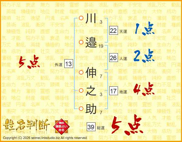 川邉伸之助さんの総運は39画の5点!