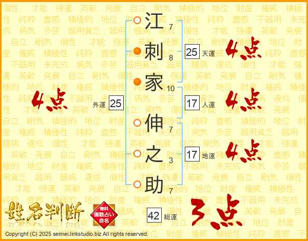 江(7画)刺(8画)家(10画) 伸(7画)之(3画)助(7画)