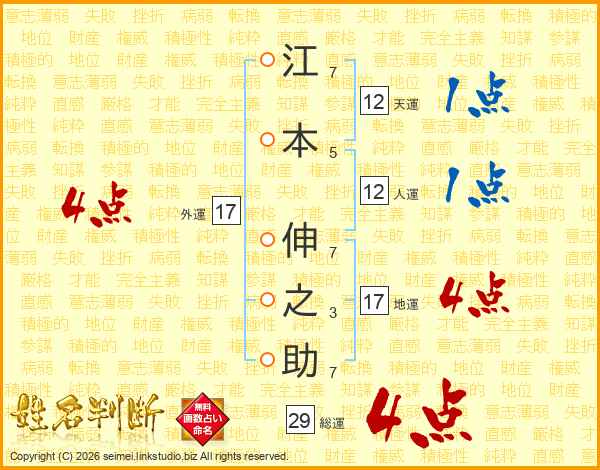 江本伸之助さんの外運は17画の4点!