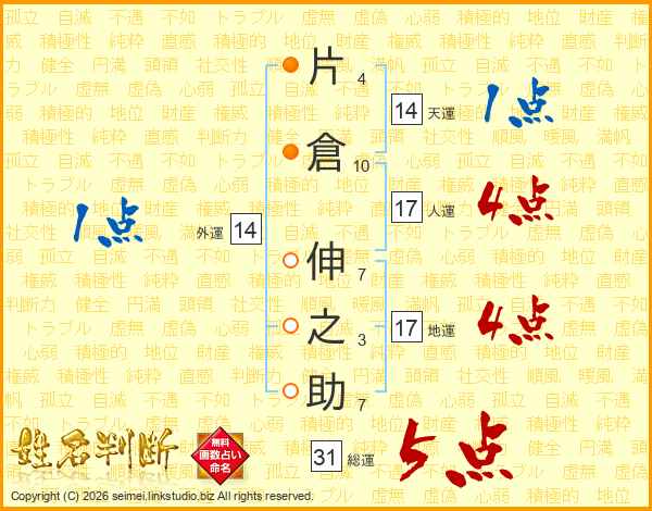 片倉伸之助さんの総運は31画の5点!