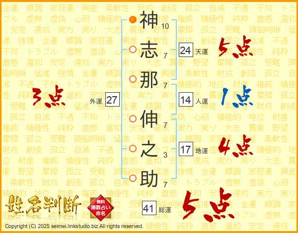 神(10画)志(7画)那(7画) 伸(7画)之(3画)助(7画)