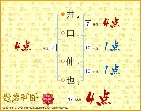 井口伸也さんの総運は17画の4点!