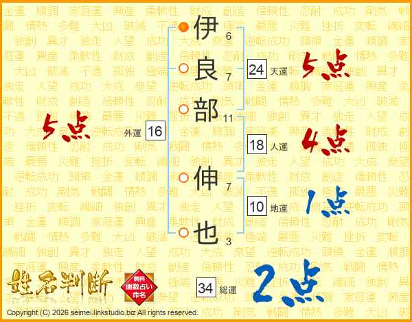 伊良部伸也さんの総運は34画の2点!
