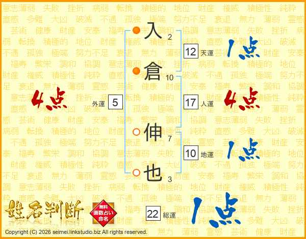 入倉伸也さんの人運は17画の4点!