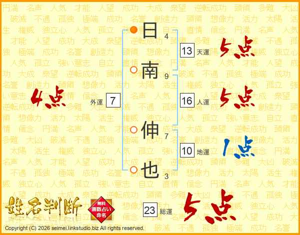 日南伸也さんの総運は23画の5点!