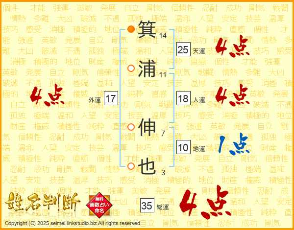 箕(14画)浦(11画) 伸(7画)也(3画)