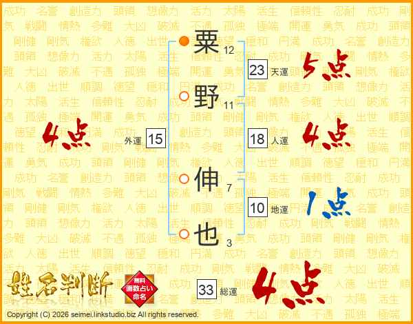 粟野伸也さんの総運は33画の4点!