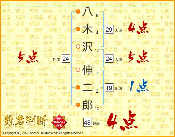八木沢伸二郎さんの総運は48画の4点!