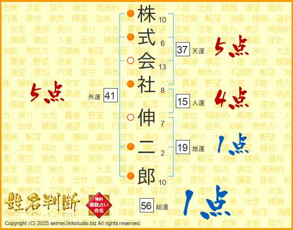 株式会社伸二郎さんの天運は37画の5点!