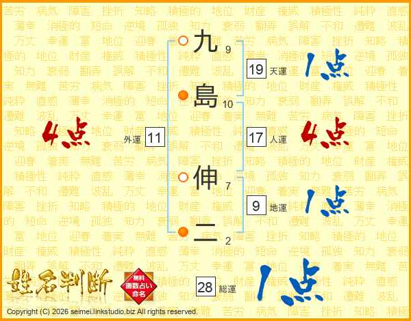 九島伸二さんの総運は28画の1点!
