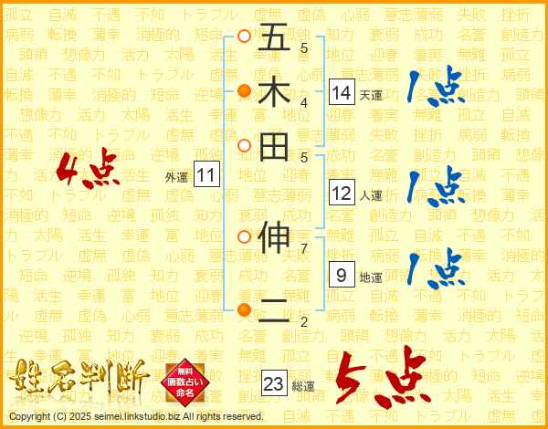 五木田伸二さんの総運は23画の5点!