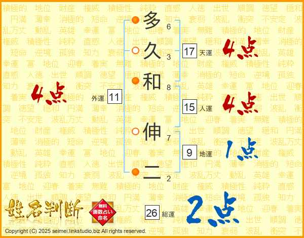 多久和伸二さんの天運は17画の4点!