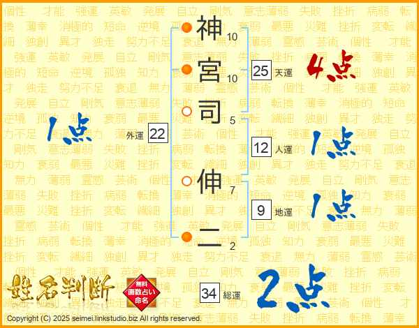 神(10画)宮(10画)司(5画) 伸(7画)二(2画)