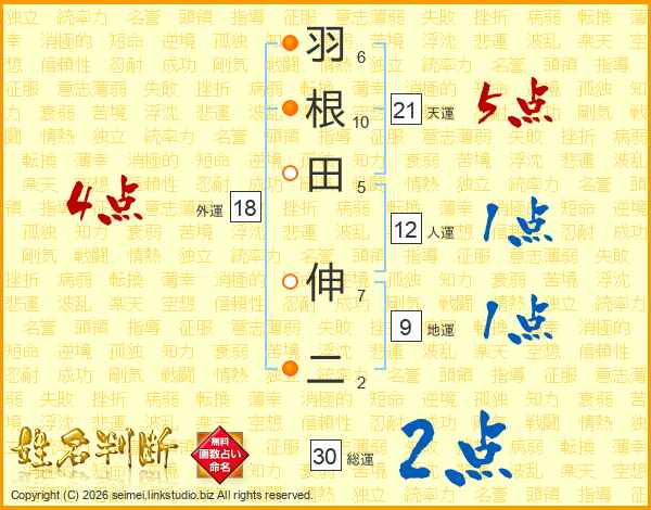 羽根田伸二さんの天運は21画の5点!