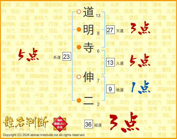 道明寺伸二さんの総運は36画の3点!