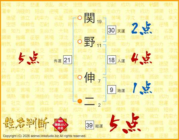 関野伸二さんの総運は39画の5点!