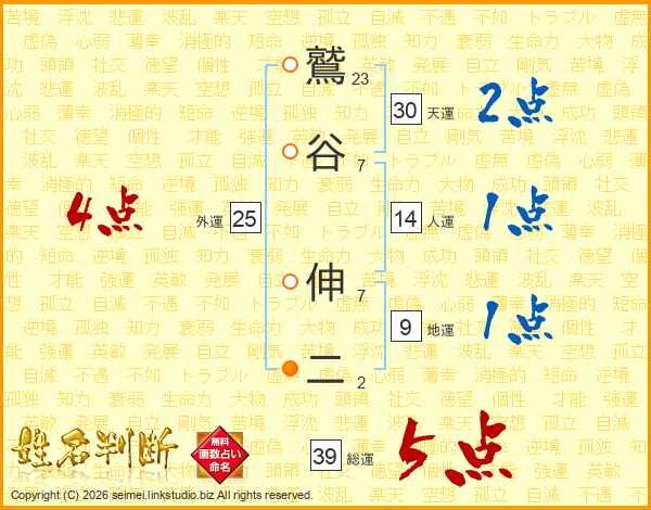 鷲谷伸二さんの総運は39画の5点!