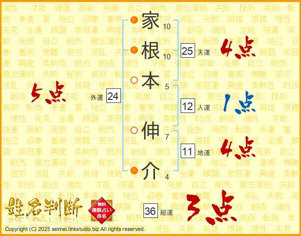 家根本伸介さんの天運は25画の4点!