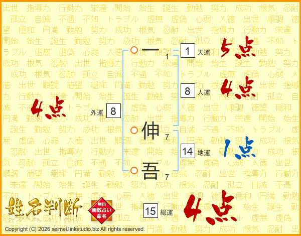 一伸吾さんの総運は15画の4点!