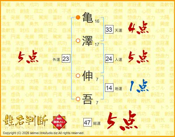 亀澤伸吾さんの総運は47画の5点!