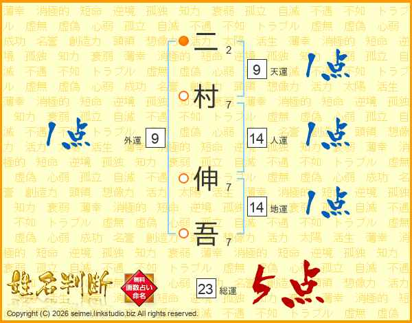 二村伸吾さんの総運は23画の5点!