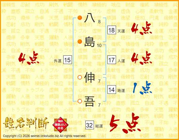 八島伸吾さんの総運は32画の5点!