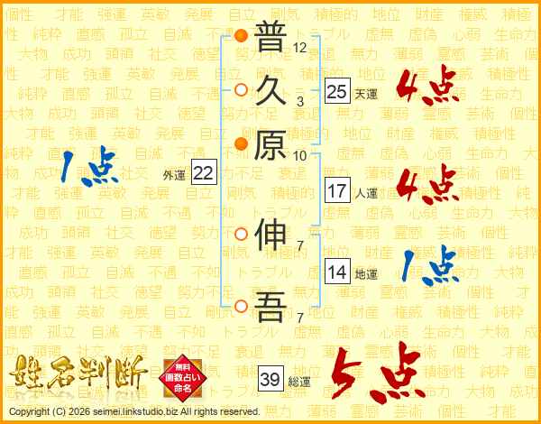 普久原伸吾さんの総運は39画の5点!