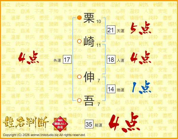 栗(10画)崎(11画) 伸(7画)吾(7画)
