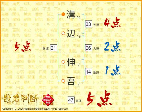 溝辺伸吾さんの総運は47画の5点!