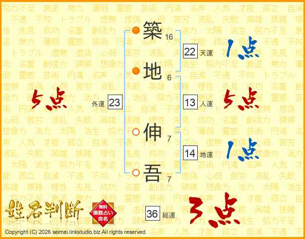 築地伸吾さんの総運は36画の3点!