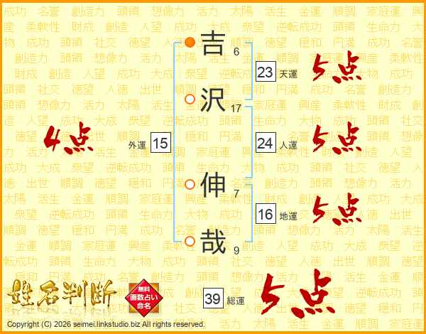 吉沢伸哉さんの総運は39画の5点!