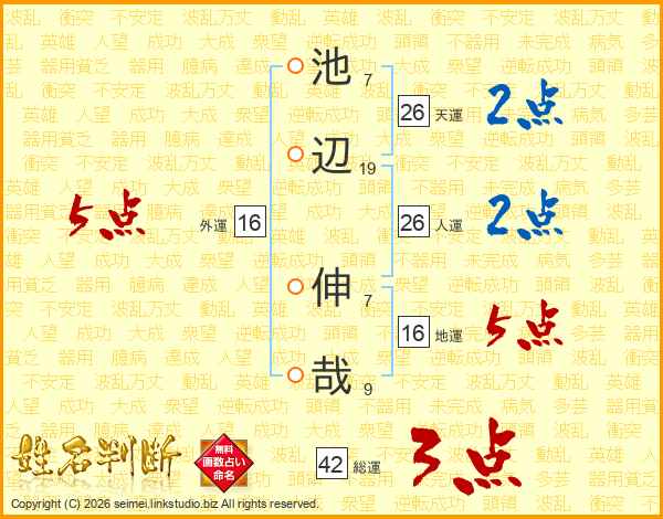 池辺伸哉さんの天運は26画の2点!