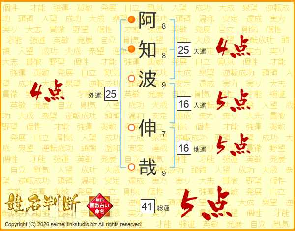 阿知波伸哉さんの総運は41画の5点!
