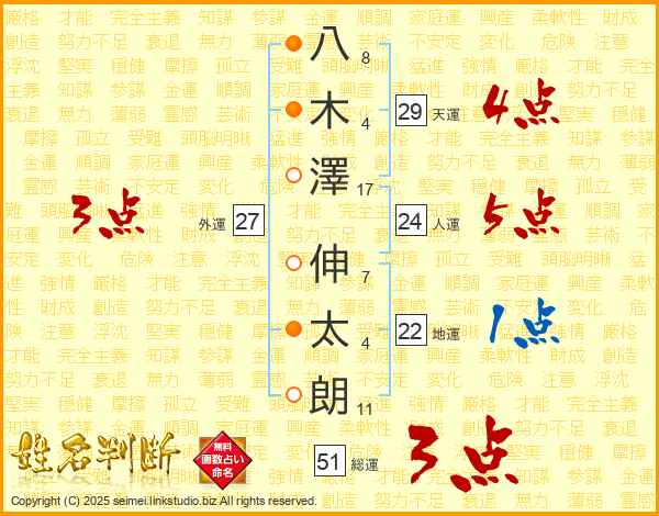 八木澤伸太朗さんの天運は29画の4点!