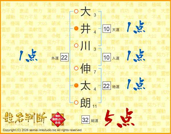 大井川伸太朗さんの総運は32画の5点!