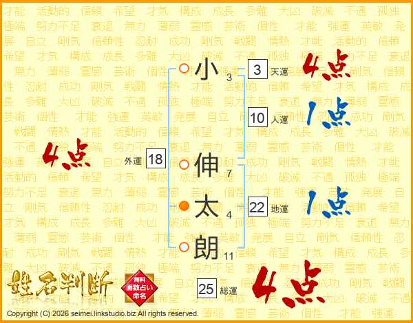 小伸太朗さんの総運は25画の4点!