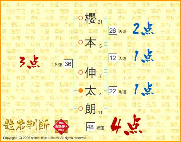 櫻本伸太朗さんの天運は26画の2点!
