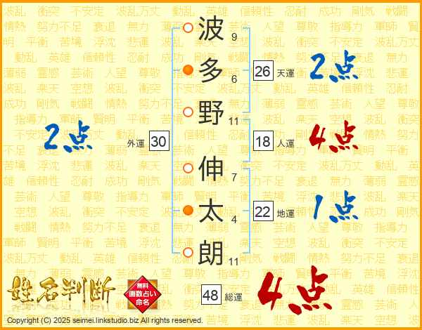 波多野伸太朗さんの天運は26画の2点!