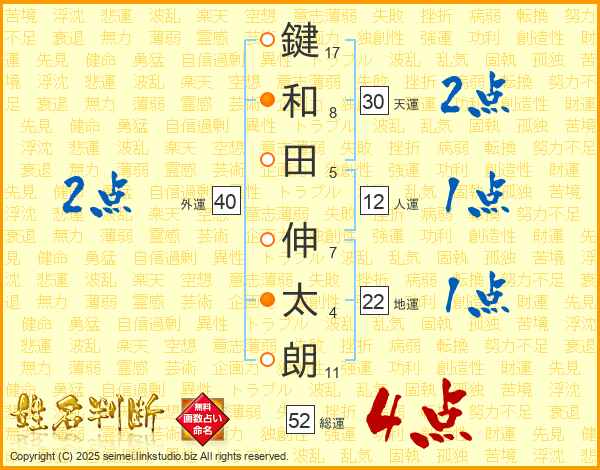 鍵和田伸太朗さんの天運は30画の2点!