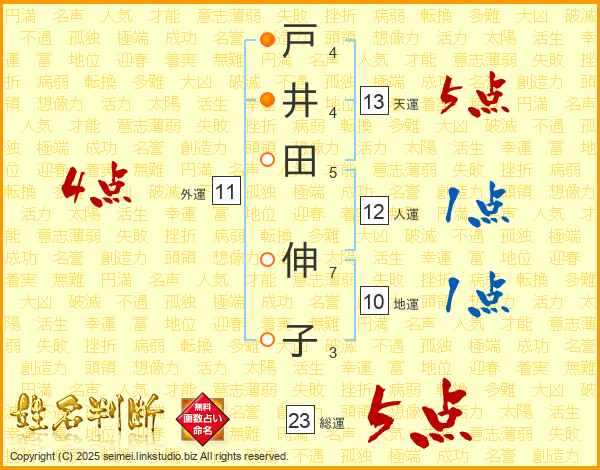 戸(4画)井(4画)田(5画) 伸(7画)子(3画)