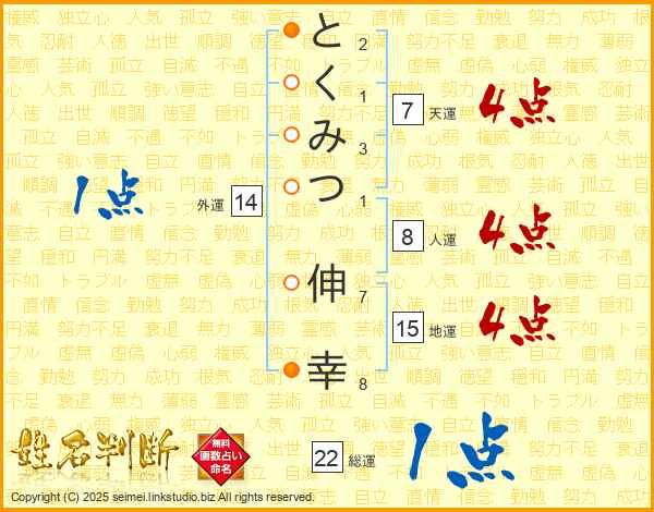 と(2画)く(1画)み(3画)つ(1画) 伸(7画)幸(8画)