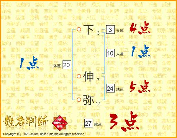 下伸弥さんの総運は27画の3点!