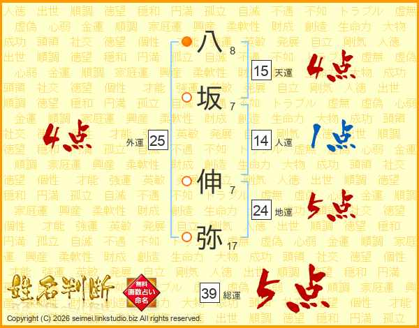 八(8画)坂(7画) 伸(7画)弥(17画)