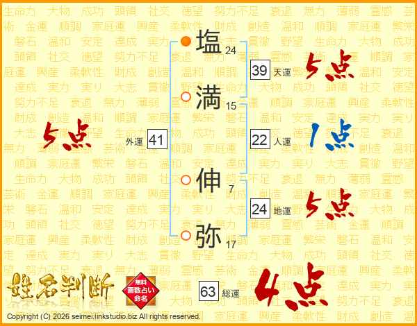 塩(24画)満(15画) 伸(7画)弥(17画)