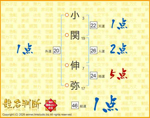 小関伸弥さんの人運は26画の2点!