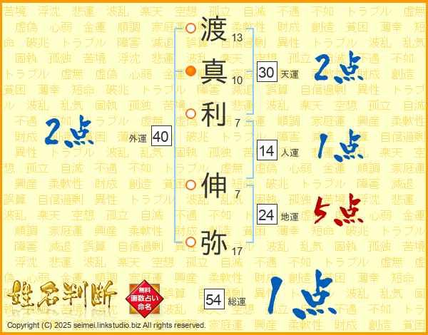渡真利伸弥さんの総運は54画の1点!