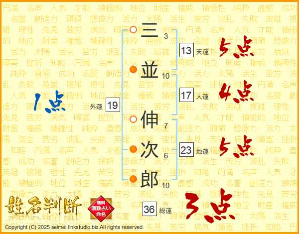 三(3画)並(10画) 伸(7画)次(6画)郎(10画)