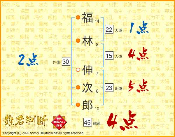福(14画)林(8画) 伸(7画)次(6画)郎(10画)