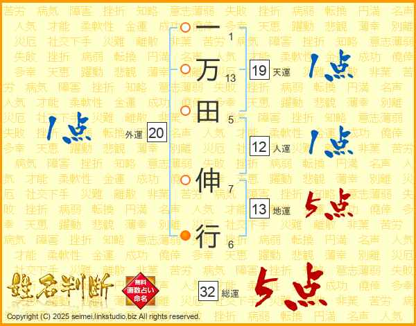 一(1画)万(13画)田(5画) 伸(7画)行(6画)