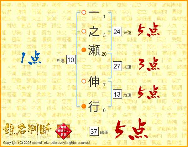 一(1画)之(3画)瀬(20画) 伸(7画)行(6画)
